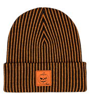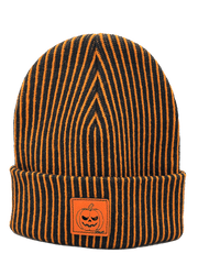 This is the ultimate Halloween beanie — bold stripes, a pumpkin face patch, and details that stand out in any crowd. Wear it to haunted houses, costume parties, or anywhere you want to bring full Halloween energy.