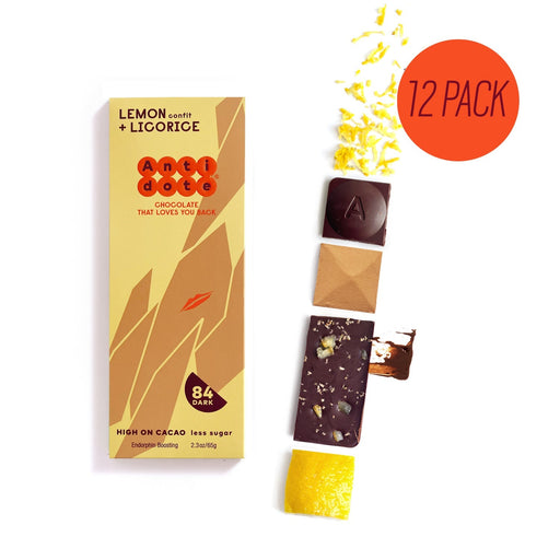 View full detailsAntidote Chocolate LOLA: LEMON + LICORICE 84% - 12 Bars by Farm2Me