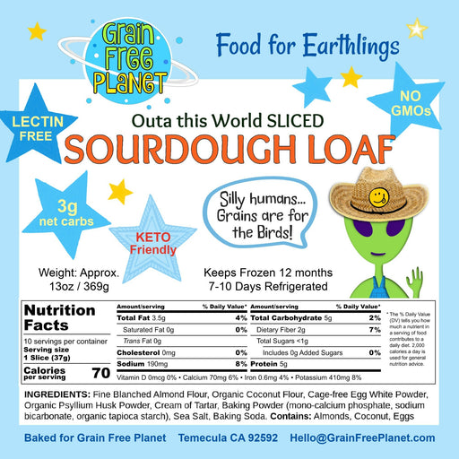 Fulfilled by our friends at Farm2MeGrain Free Planet's Sourdough Bread is unique in our line of clean keto breads. It's flavor is subtle but so del...