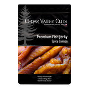 Dive into a bold and savory experience with Cedar Valley Cuts Premium Fish Jerky: Spicy Salmon! Crafted from the finest cuts of Atlantic salmon, this unique jerky offers a satisfying blend of rich flavor, tender texture, and a perfect amount of spice.