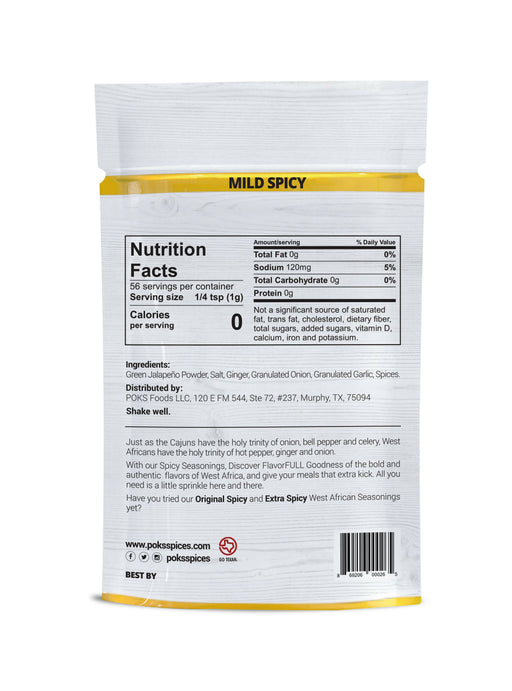 Fulfilled by our friends at Farm2MePOK's Spices Mild Spicy West African Seasoning is a Jalapeño-Based Spicy Seasoning with no MSG, no Sugar, and N...