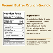 Our two-time SOLD OUT Peanut Butter Crunch granola combines smooth maple syrup, crunchy peanuts and hearty oats to make the most satisfying salty-sweet clusters -- without any refined sugars or added oils.