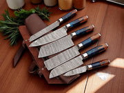 The handles are crafted from a durable wood and resin blend, giving you a comfortable grip and a unique look. For safe storage and travel, the set comes with a genuine leather roll, making it ideal for professionals and passionate cooks alike.