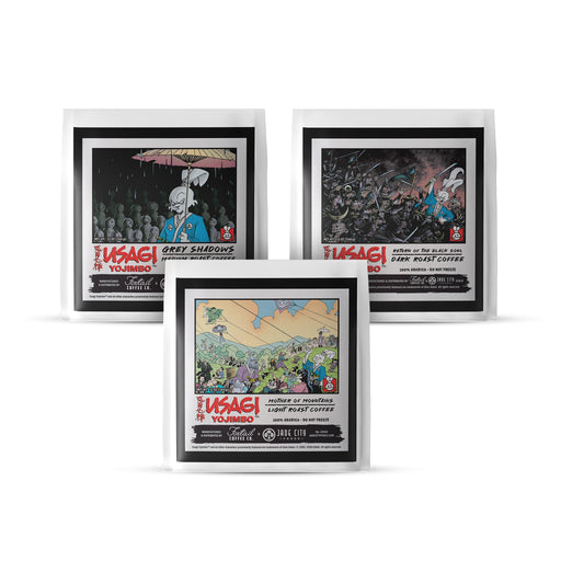 This pack contains all 3 blends of Usagi Yojimbo Series 1 coffee! Mother of Mountains : Light Roast CoffeeGrey Shadows : Medium Roast CoffeeRetu...