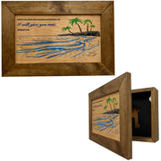 Securely store your gun and other home self defense gear inside the Bellewood Designs Bible Verse Matthew 11:28 and Coastal Scene Decorative & Secure Wall-Mounted Gun Cabinet. The Matthew 11:28 Bible Verse "Come to me, all you who are weary and burdened, and I Will Give You Rest" is included on the front along with a peaceful coastal scene. This decorative bible verse gun cabinet will be a beautiful addition to your homes decor, make a bold statement about your faith and know one will know what's inside! Your firearm and other tactical gear is easily accessible yet securely stored, so you'll never have to worry about leaving it unattended.