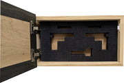 Securely store your firearm in plain sight with the Bellewood Designs Decorative Deer Scene Wall-Mounted Secure Gun Cabinet. Your firearm and other tactical gear is easily accessible yet securely stored, so you'll never have to worry about leaving it unattended. Once you apply the key the lock immediately disengages and you're ready for self defense. This cabinet features a black frame, natural maple background and eye-catching 3D deer scene finished in english chestnut. The cabinet will be a focal point of any room and no one will ever know what's inside! The secure gun cabinet is a unique gift idea for hunters and outdoorsman.