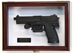 • Single Pistol Display Case Wall Mount Solid Hardwood Cabinet Gun Holder White Felt Background