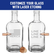 This 750mL decanter is hand-embedded with a real, lead-free 0.50BMG bullet and laser etched with our best selling 'Merica design.