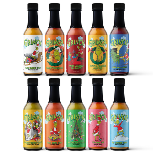 This Hot Sauce Pack contains all 10 Grinch Hot Sauce Flavors! Roast Beast SauceWho Hash Hot SauceThe Mean One Hot SauceA Great Grinchy TrickMt. Cru...