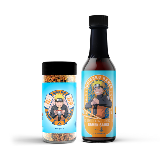 Contains the following products: Naruto's Hidden Leaf Ramen Spices4oz / 113gNaruto's Ichiraku Ramen SauceHeat: Low