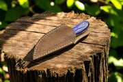 Elevate your outdoor experience with this custom handmade skinning knife, expertly crafted for precision and durability. The 3.5-inch D2 steel blade ensures exceptional sharpness and edge retention, making it ideal for skinning and field dressing. Paired with a beautifully finished exotic wood handle, this knife offers a comfortable and secure grip in any condition. The included premium leather sheath provides safe storage and easy portability. Whether you're a hunter or an outdoor enthusiast, this skinning knife is your ultimate tool for the wild.