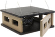 Delight your Bluebird Feathered Friends with this Bluebird "Block House" Mealworm Feeder. The Bird Feeder features openings for bluebirds to fit through and get to the mealworms in the center cup. However, larger birds such as Starlings will not be able to get into the feeder. Since it is all open air and no plexiglass, the bluebirds can easily get in and out without getting trapped. The openings for the Bluebirds to go in and out of measure 2 & 3/4" long and are 1 & 1/2" tall. One of the sides opens up for easy access to refill the cup. The mealworm cup holds 1 cup of worms (or other goodies). The Blue Bird Feeder is hand-made by an Amish family in Shipshewana, Indiana. The Bluebird Feeder is made with durable poly lumber which is 100% made from post-consumer recycled plastic! Poly lumber is fade-resistant, maintenance-free, and of course, eco-friendly. Also, it features stainless steel fasteners and hanging cables. The mealworm bird feeder measures 11.5" Long x 11.5" Wide x 5" High.