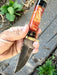 Experience the perfect blend of craftsmanship and performance with this custom handmade hunting knife. Designed for durability and precision, it features a 3.75-inch Damascus steel blade with a razor-sharp edge, making it an excellent companion for outdoor adventures. The epoxy resin handle with a brass guard ensures a comfortable grip and enhanced control. A premium leather sheath is included for safe storage and easy carrying.