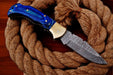 Custom Handmade Damascus Pocket Knife – Blue Exotic Wood