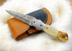 Handmade Damascus Folding Knife – Bone Handle, 3" Blade