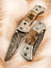 ✔ Sheep Horn Handle – Unique texture with an engraved steel bolster