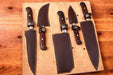 Handmade Damascus Kitchen Knives Set with Leather Roll