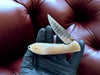 Precision-crafted pocket knife with Damascus steel & bone handle!