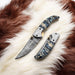Upgrade your EDC collection with this custom handmade Damascus steel pocket knife. Featuring a razor-sharp 3-inch blade, an epoxy resin handle with an engraved steel bolster, and a secure liner lock mechanism, this knife is both stylish and functional. It comes with a premium leather case for safe storage.