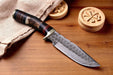 Elevate your hunting gear with this custom handmade deer knife, built for rugged performance and lasting durability. Featuring a 5-inch Damascus steel blade known for its sharpness and striking layered pattern, this 10-inch knife delivers precision and power in every cut. The naturally textured antler horn handle ensures a comfortable, secure grip even in wet conditions. A genuine leather sheath is included, offering protection and style on every outdoor adventure.