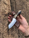 Experience precision and durability with this custom handmade skinning knife crafted from high-quality D2 steel. Designed for hunters, this knife features a 3.75-inch razor-sharp blade that ensures clean and effortless cuts. The ergonomic sheep horn handle provides a comfortable grip for extended use. With a 7.5-inch overall length, this knife is perfect for detailed skinning tasks. Includes a premium leather sheath for safe storage and portability.