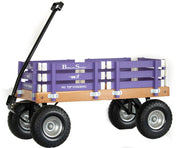 Our Best-Selling Wagon by far! Berlin Flyer Wagons is a Amish and Mennonite owned and operated business in Holmes County, Ohio. The Berlin Flyer F410 Sport is the workhorse of the Berlin Flyers Wagon line, first made in 1965. These popular express wagons are made right here in Ohio using locally-sourced solid hardwoods and steel, and all parts (except the wheels) are manufactured in-house. Each Berlin Flyer Wagon is made with a solid wood bed, painted hardwood side rails that are easily removed, and an all-steel frame that is welded and powder-coated. Finally, the express wagon is finished with non-toxic paint and varnish for your peace of mind. The Berlin F410 Sport comes with 10" x 4" foam-filled tires and the wagon bed measures 36" x 17.25". Easy assembly (approximately 5-10 minutes) is required and detailed assembly instructions are included. The Berlin Sport Wagon weight capacity is rated for up to 300 Lbs. Choose between 8 flashy colors: Red, Emerald Green, Orange, Purple, Gray, Hunter Green, Pink, and Blue.