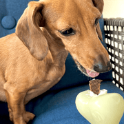 Think beyond the pup cup! With one of our versatile treat dispensers, you can layer flavors and textures for a treat your dog will love, or freeze it for even longer-lasting fun. Luna will drool for natural peanut butter layered with Chicken Treat Topper and Chicken Crumbles. Does Charlie have a chicken allergy? Opt for cream cheese topped with Antler Powder and Turkey Chips!