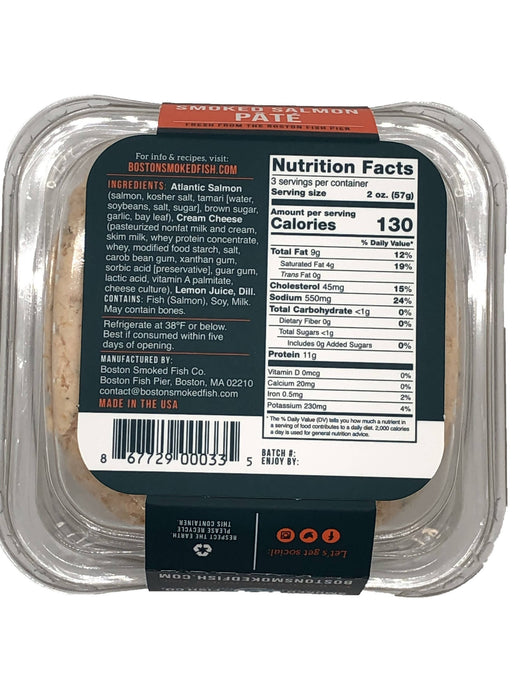 Fulfilled by our friends at Farm2MeBoston Smoked Fish's Smoked Salmon Pâté, a Rustic pâté. Food service pack. The Boston Smoked Fish Company produc...