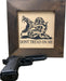 This 2nd Amendment hidden gun storage featuring a modern take on the Gadsden DONT TREAD ON ME design is stained dark walnut with a maple inset that is hand-painted. The cabinet includes a magnetic safety lock, customizable foam to secure your gun and all mounting hardware to hang on your wall. The cabinet has a very modern and hard-rock look.