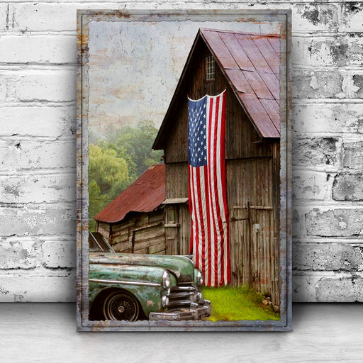 American Flag Decorative Secure Wall Mounted Gun Cabinet Dark Walnut