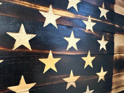 Securely store your gun and other home self defense gear inside the Bellewood Designs Large Burnt American Flag Hidden Gun Cabinet. The American Flag is handmade with burnt wood, and then finished with high gloss finish which is sure to make a statement in any room. Our decorative Burnt American Flag Gun Case is discreet, wall-mountable and securely stores your firearm and other tactical gear while keeping it easily accessible, so you'll never have to worry about leaving it unattended.