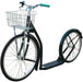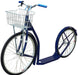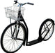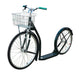 Amish Kick Scooter - Adult Size. If you take a drive through Lancaster County, it won't take you long to see a Kick Scooter being ridden by an Amish person. Next to the Horse and Buggy, these sleek racing scooters are the most popular method of transportation for the Amish People. Hop on one of these genuine Amish-Made Scooters yourself and go places faster while getting some fun, heart-healthy exercise. This Kick Scooter is made by the Amish Folks at Groffdale Scooters, a small Amish machine shop in Lancaster County, PA. All their scooters are quality constructed with all-steel frames and fenders, ball bearings for easy steering, and a powder coated finish. This Model 2420 Scooter is great for the serious kick scooting fan and is the biggest and the best of our Amish Scooters. It comes standard with 85 psi air tires on a 24" aluminum rimmed racing front wheel and a 20" aluminum rimmed rear wheel, a rear foot brake, a front hand brake, and a wire cargo basket. The scooter has a low rider platform with a 1.75" ground clearance for comfortable and efficient riding. The manufacturer recommended rider weight limit is 200 pounds (but we know of people who weigh 250 lbs. or more who ride these scooters with no issues). Choose between four popular colors. Also, you can choose to add a handy kickstand to keep your scooter standing. The Kick Scooter requires assembly and it comes with detailed assembly instructions. It is a large item which will ship to you directly from Groffdale Scooters, so please allow an extra 1-2 business days for delivery.