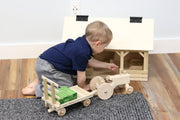 Amish-Made Wooden Toy Tractor & Hay Wagon Set with Hay Bales