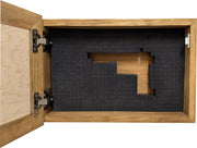 Securely store your gun and other home self defense gear in plain sight with the Bellewood Designs Bald Eagle and American Flag Patriotic Decorative Wall-Mounted Secure Gun Cabinet. The American Flag and Eagle design are engraved, hand painted and then finished with high gloss finish which is sure to make a statement in any room. Your firearm and other tactical gear is easily accessible yet securely stored, so you'll never have to worry about leaving it unattended.
