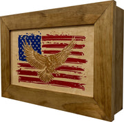 • Bald Eagle & American Flag Patriotic Decorative Wall-Mounted Secure Gun Cabinet.