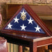 The hand rubbed cherry finish 101st airborne flag case , beveled glass front, and great seal of the United States completes the look of this 101st airborne flag case which creates a proper memorial for your loved one’s tribute of their military service.