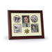 U.S. Flag Store's MAH Sheriff Collage Frame is designed to hold 5 pictures: one 3-Inch by 5-Inch picture, two circular 3-Inch pictures and two 3.5-Inch by 3.5-Inch pictures. These pictures are set into a double layer of Blue matting with Gold trim. The frame is made from Mahogany colored wood, and the outside dimensions measure 11-Inches by 14-Inches. The MAH Sheriff 5 Picture Collage Frame is perfect for proudly displaying the pictures of an individual who is serving, or has served in the U.S. Sheriff.