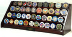 Perfect way to display your special coins that you have collected. This case can display up to a total of 40 standard size challenge coins. Can display larger coins as well. A total of 4 shelves with up to 10 coins on each row. Each shelf has a groove going across to prevent the coins from easily tilting over.
