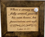 The Luke 11:21 Recessed Decorative Hidden Gun cabinet is a secure in-wall gun safe, complete with a magnetic lock and customizable foam insert. This decorative wall art is finished in dark walnut stain with a natural maple front and the Luke 11:21 Bible verse: "When a strong man, fully armed, guards his house, his possessions are safe. Luke 11:21" design. Our advanced hidden gun safe design ensures your gun is safely and securely stored, providing peace of mind for gun owners. Being recessed in the wall, no one will ever know it's there. This cabinet can also be mounted on the wall for easier installation.