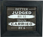 This hidden gun safe with a 2nd Amendment "Better Judged By 12 Than Carried By 6" phrase design is a secure in wall or on wall gun safe complete with a magnetic lock and a customizable foam insert that is easily modified to fit your gun and other tactical self defense gear. The decorative wall gun case is finished in black stain engraved and then hand-painted for a unique finish. Our advanced design ensures your gun is safely and securely stored yet quickly accessible when the key is applied. Best of all - No one will ever know what's inside!