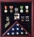 Veterans flag, photo, Medal display case.